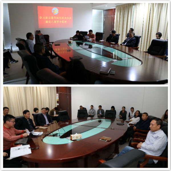 5月23日上午,機關全體黨員在公司1203會議室參加了學習市紀委《連云港市深化機關作風建設八條禁令》通知精神的會議,機關黨支部書記朱兵主持會議并傳達了深化機關作風建設八條禁令文件的精神及要求。