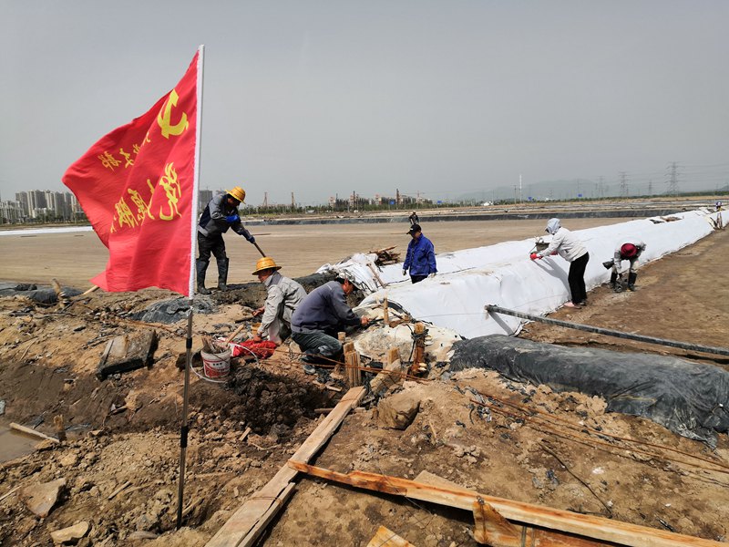 513日,大浦工區(qū)東灘上一片繁忙的景象。東灘1680公畝鈣鹽結(jié)晶池全部改為礦鹽生產(chǎn),由于面積廣、工期緊,任務(wù)重,人員少,搶占在“小滿”之前全部灌池難度比較大,嚴重影響全年原鹽產(chǎn)量。針對這一現(xiàn)象,工區(qū)迅速作出統(tǒng)一部署,精心組織西灘、太和段黨員突擊隊全員行動,一起助力東灘灌池?;顒又?,大家擼起衣袖、揮舞鍬锨,你追我趕、有條不紊,經(jīng)過一天突擊,平整鹵格80公畝、放繩2000米、包裹浮板500米、打樁20根,以實際行動展現(xiàn)了黨員突擊奉獻服務(wù)風采,為工區(qū)完成全年四萬噸原鹽目標奠定了堅實基礎(chǔ)。